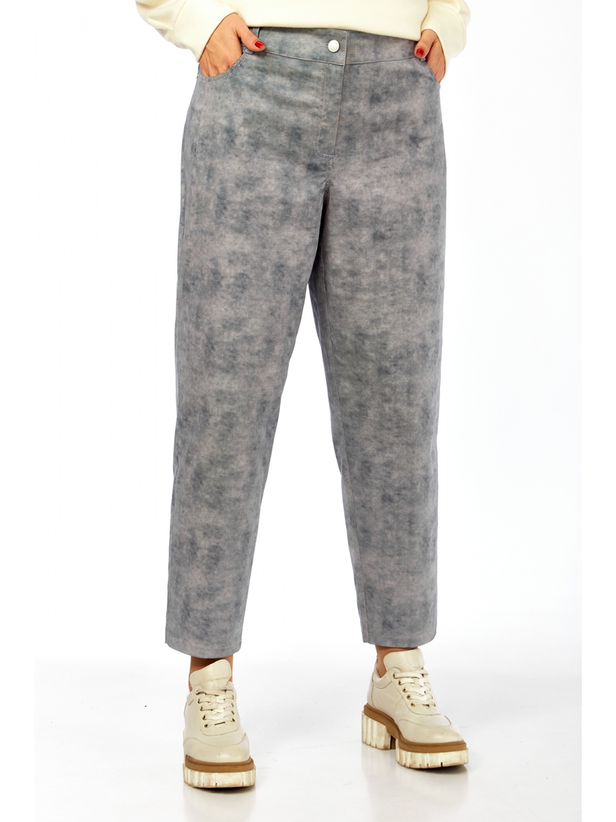 Брюки женские, изготовлены из хлопковой костюмной ткани под джинс. В брюках обработан пояс, застежка на тесьму-молнию и петлю-пуговицу. На задней части брюк кокетка и накладные карманы. На передней части боковые карманы.