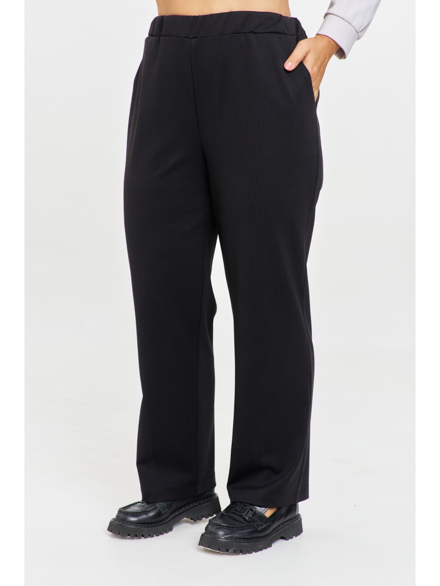 Универсальные трикотажные брюки свободного силуэта, прямого кроя, с высокой посадкой. В боковых швах наклонные карманы. Притачной пояс на резинке. Ткань хорошо тянется и это позволяет вам комфортно себя чувствовать.
