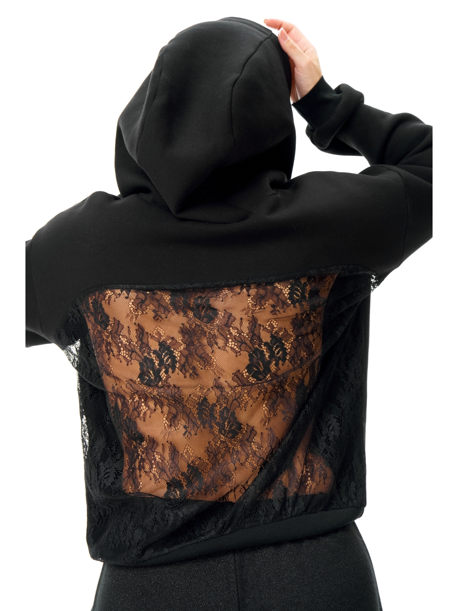 Сочетание нежности и дерзости в одной модели. Это не просто худи, а настоящий арт-объект для вашего гардероба. Мягкий и уютный крой спереди идеально контрастирует с соблазнительной спинкой, украшенной ажурным кружевом.