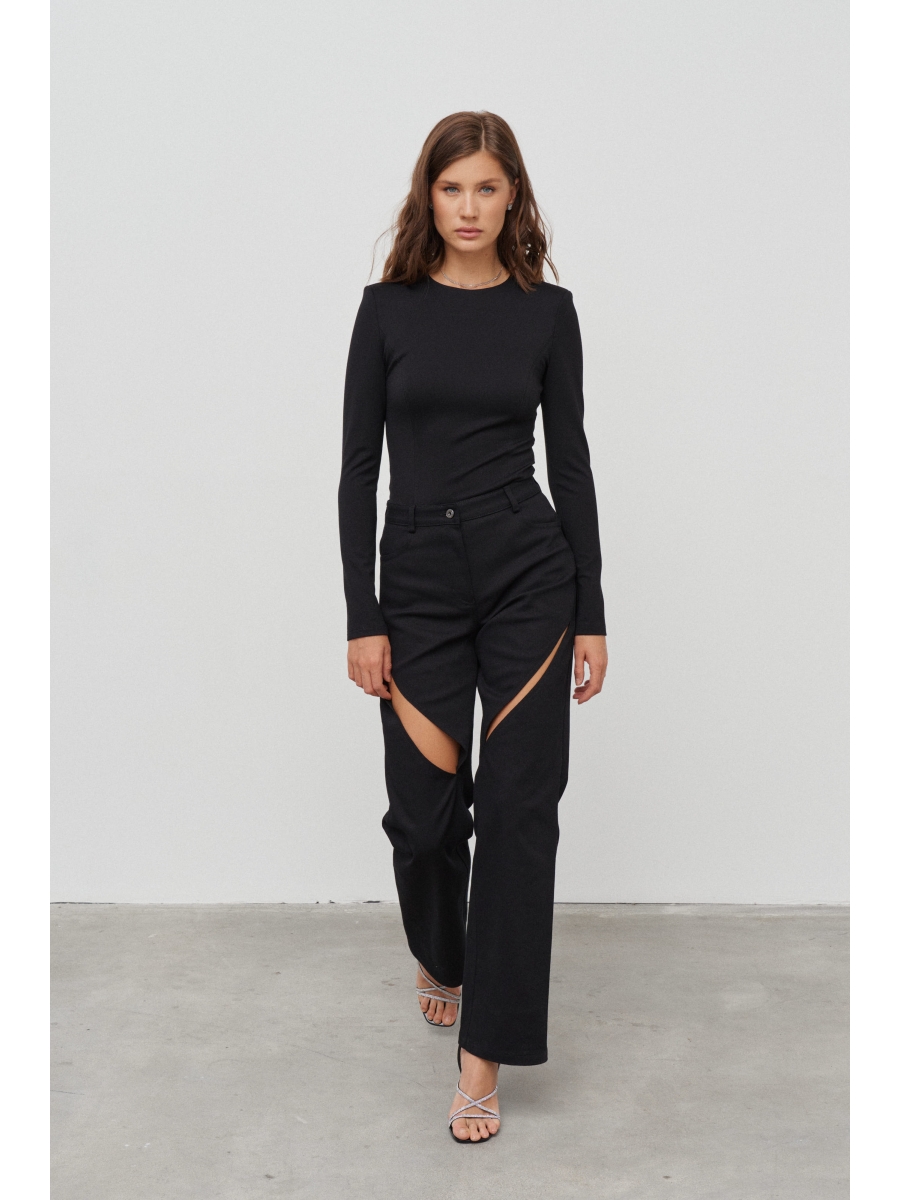 Оформить заказ →Джемпер из трикотажного полотна прилегающего силуэта с длинным рукавом и плечевыми накладками. По переду и спинке рельефы для плотного приталивания по фигуре. Вырез горловины круглый. Сзади застёжка на потайную молнию.