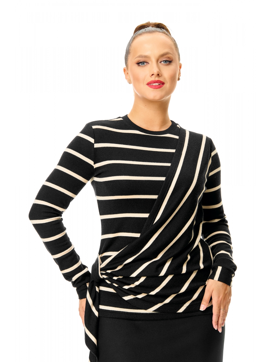 Оформить заказ →Джемпер из уютного мягкого трикотажа ниже талии, полуприлегающего силуэта, с деталью-драпировкой по переду. Планка горловины круглая. Рукав длинный.