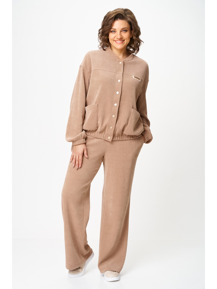 Стильный женский костюм, выполнен из трикотажного полотна в рубчик.