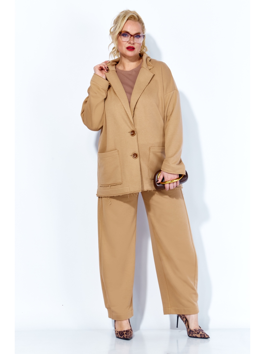 Жакет со спущенным плечом. Воротник пиджачного типа, по полочке идут накладные карманы. Жакет без подкладки, мягкий и легкий. Края борта воротника, низов и карманов не обработаны. Застежка на петли и пуговицы. Выполнен в крое Oversize свободной формы и посадкой по фигуре. Если хотите силуэтную посадку, выбирайте на размер меньше. Если хотите посадку свободнее - заказывайте свой размер.