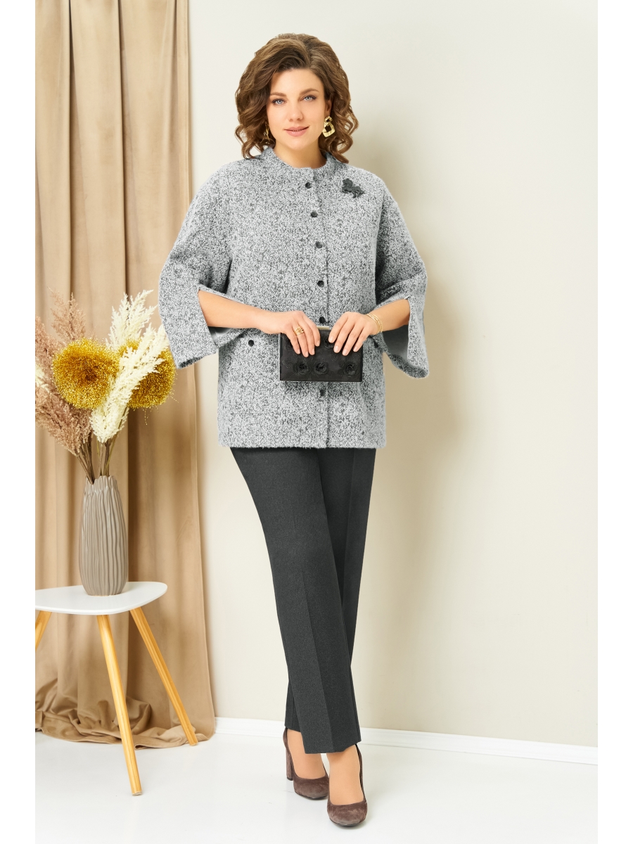 Комфортный трикотажный жакет с отложным воротником-полустойкой без подкладки с потайной застежкой на пуговицы и накладными карманами. Рукав жакета втачной, слегка спущенный. В рукава вставлены потайные молнии для различных вариантов носки.