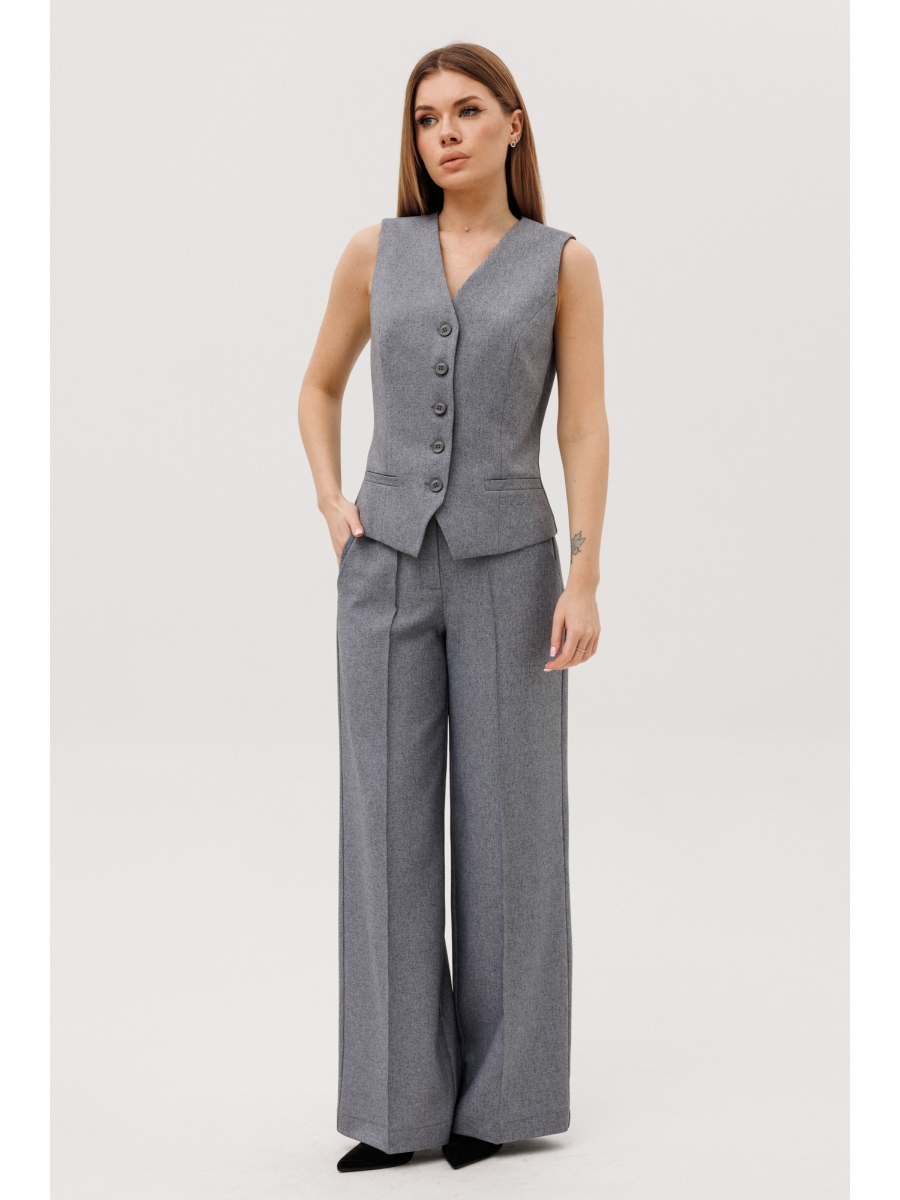 Жилет прилегающего силуэта, с V- образным вырезом, на подкладке. По переду рельефа карманы "листочки", застёжка на петли-пуговицы. По спинке вытачки.