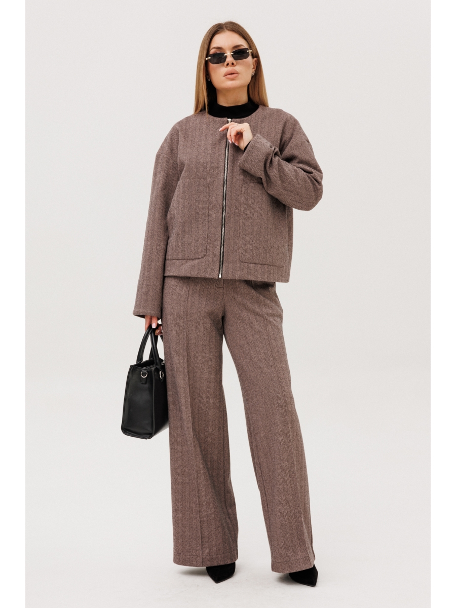 Элегантный женский жакет, выполнен из теплой ткани, добавит изысканности любому образу. Прямой силуэт с модным спущенным плечом обеспечивает комфортное ношение, а круглый вырез горловины подчеркивает лаконичность дизайна. Жакет оснащен удобной застежкой на молнию, что позволяет легко регулировать глубину декольте. Втачные двухшовные рукава придают изделию аккуратный вид. Функциональные накладные карманы на передней части и качественная подкладка увеличивают удобство и практичность жакета. Идеальный выбор для создания стильного и современного ансамбля.