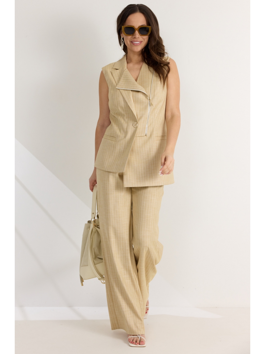 Жилет полуприлегающего силуэта с оригинальной застежкой на косую молнию и пуговицу. Перед жилета на хлопковой подкладке. Низ жилета ассиметричный.
