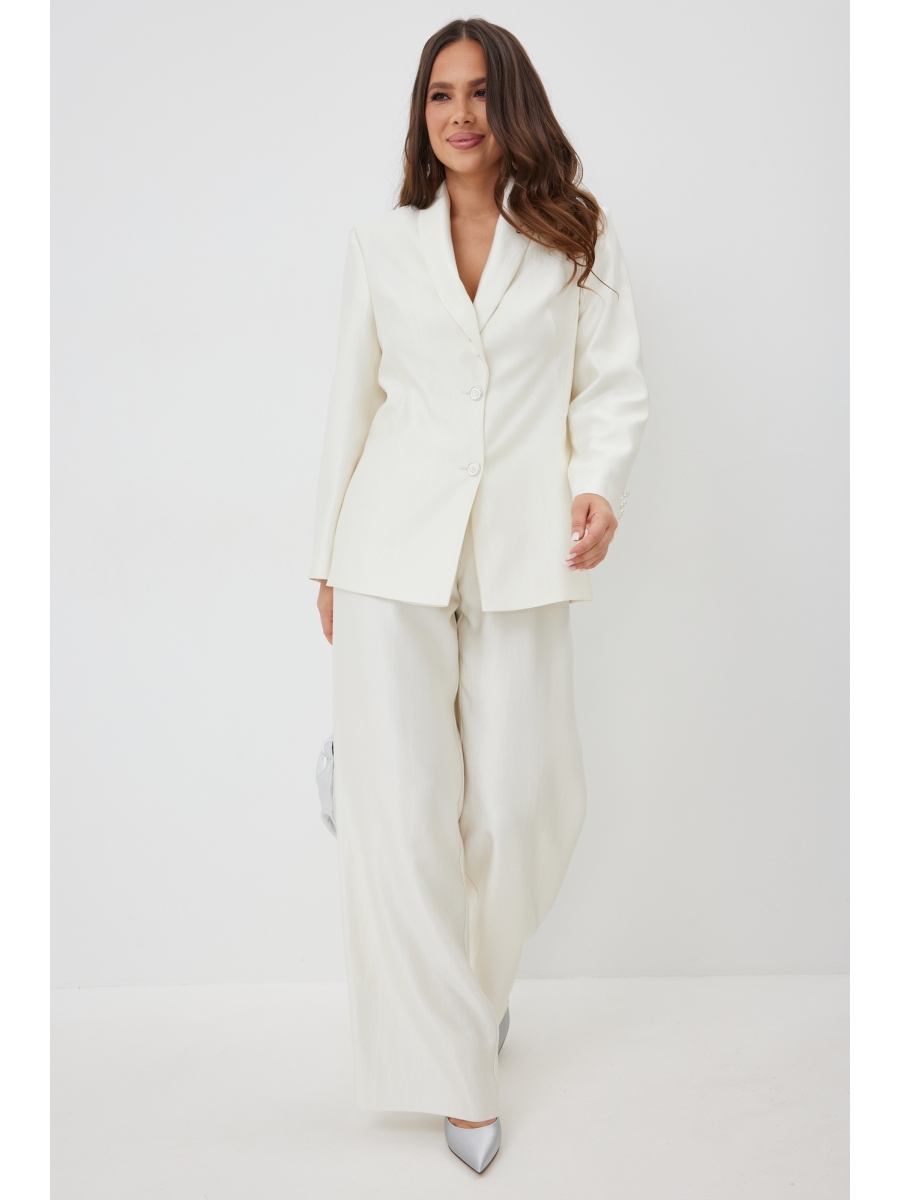Выполнен из красивой гладкой костюмной ткани с легким жемчужным отблеском.