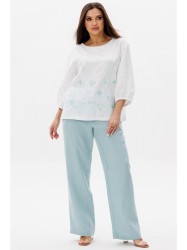 Льняной двухпредметный костюм Ma Cherie, состоящий из блузы и брюк.