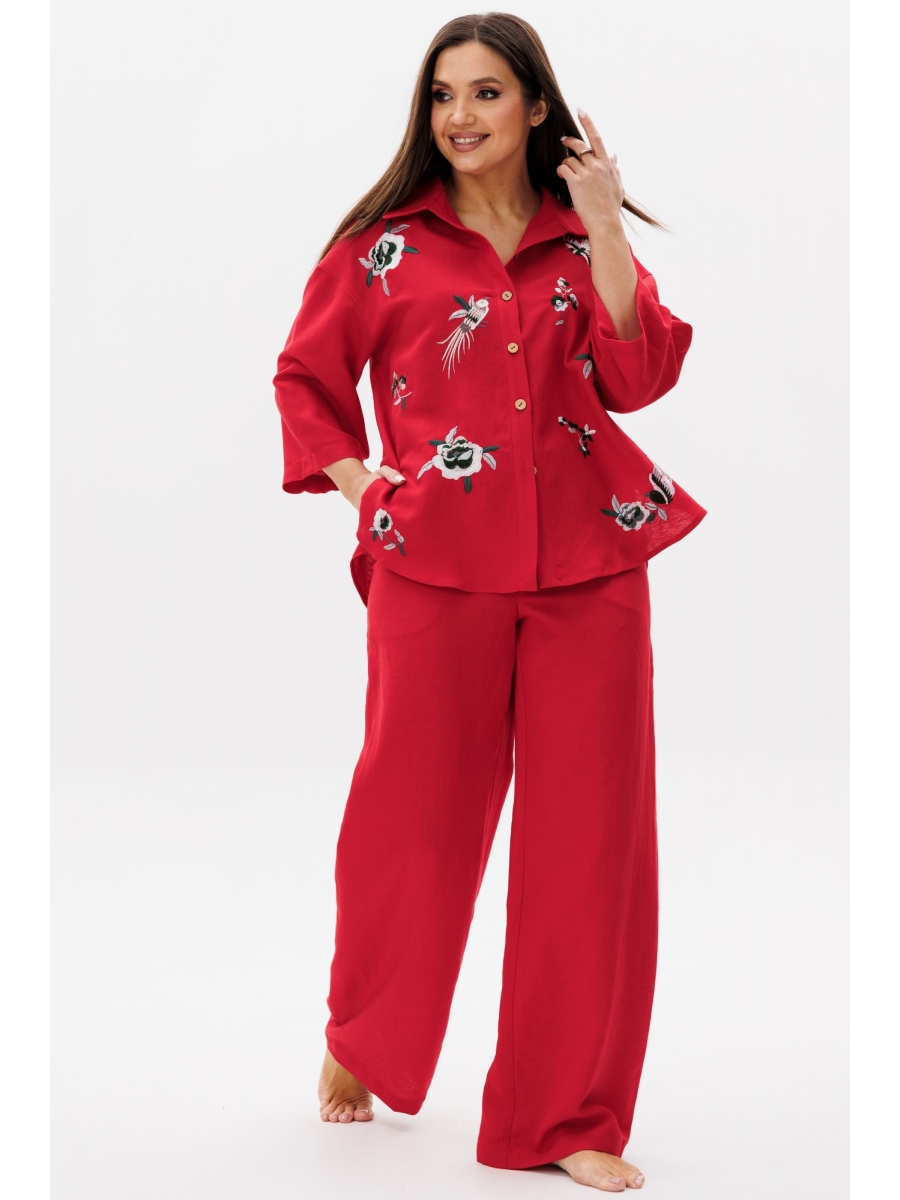 Льняной двухпредметный костюм Ma Cherie, состоящий из рубашки и брюк.