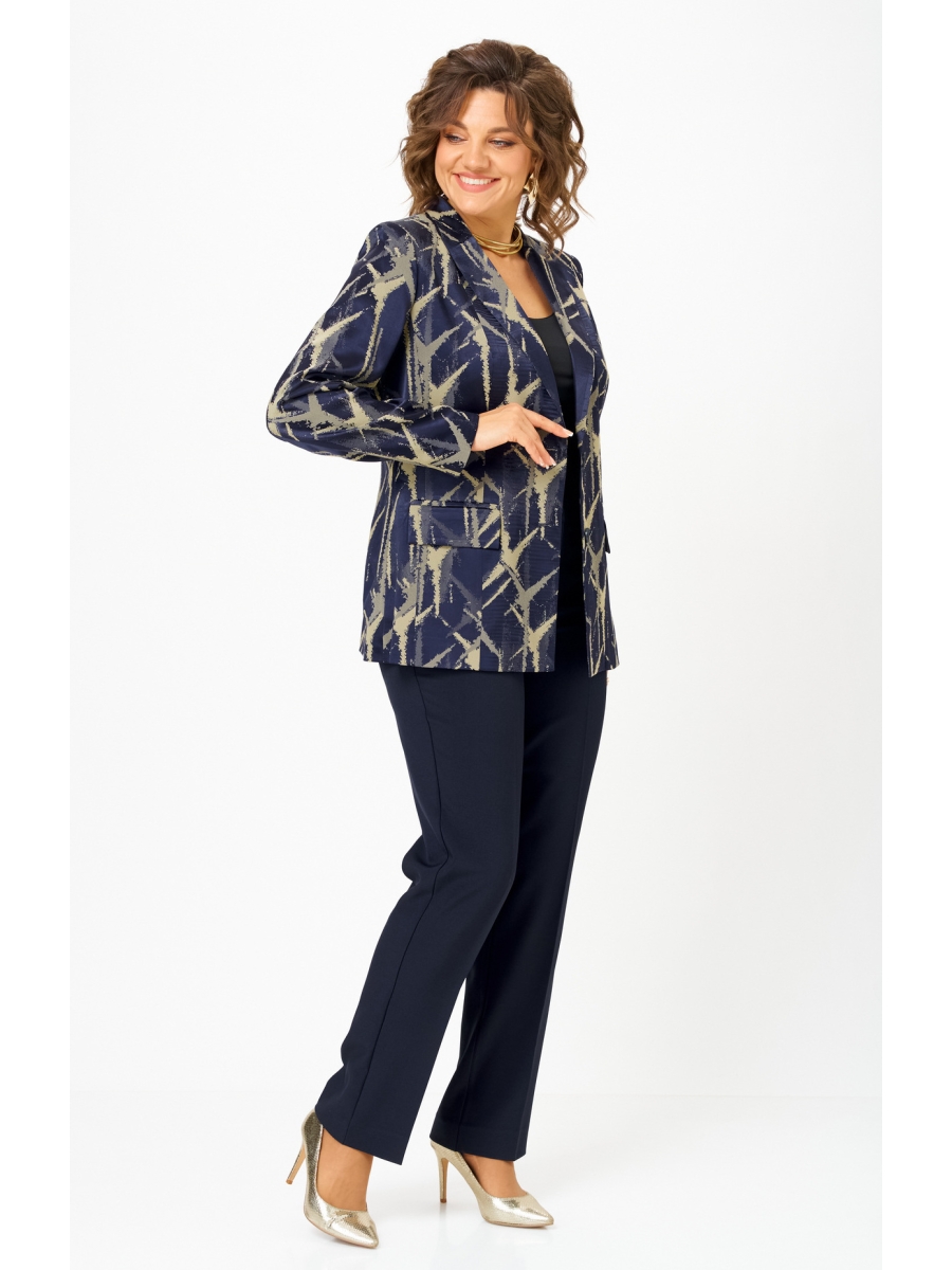 Брючный костюм 412+596 синий+золото, БелЭльСтиль – купить с доставкой в Екатеринбурге на ekaterinburg.belpodium.ru