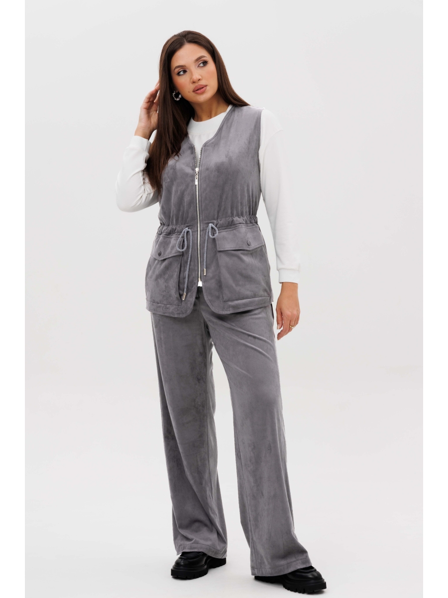 Нестандартный жилет с накладными карманами-пеналами с клапаном. Регулирующая кулиса, подчеркивающая талию. Свободный силуэт, центральная застежка на тесьму молнию, фигурная линия низа. Жилет на подкладке.