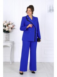 Элегантный брючный костюм двойка — идеальный выбор для деловых встреч, офисных будней, торжеств и вечерних выходов. Костюм подходит для женщин с формами: он формирует правильный силуэт, подчеркивая достоинства и создавая стройный образ. Двубортная застежка со смещением и декоративной вставкой создаёт эффект многослойности, придавая образу стильный акцент. Универсальная модель — одинаково уместна как на работе, так и на торжественном мероприятии.