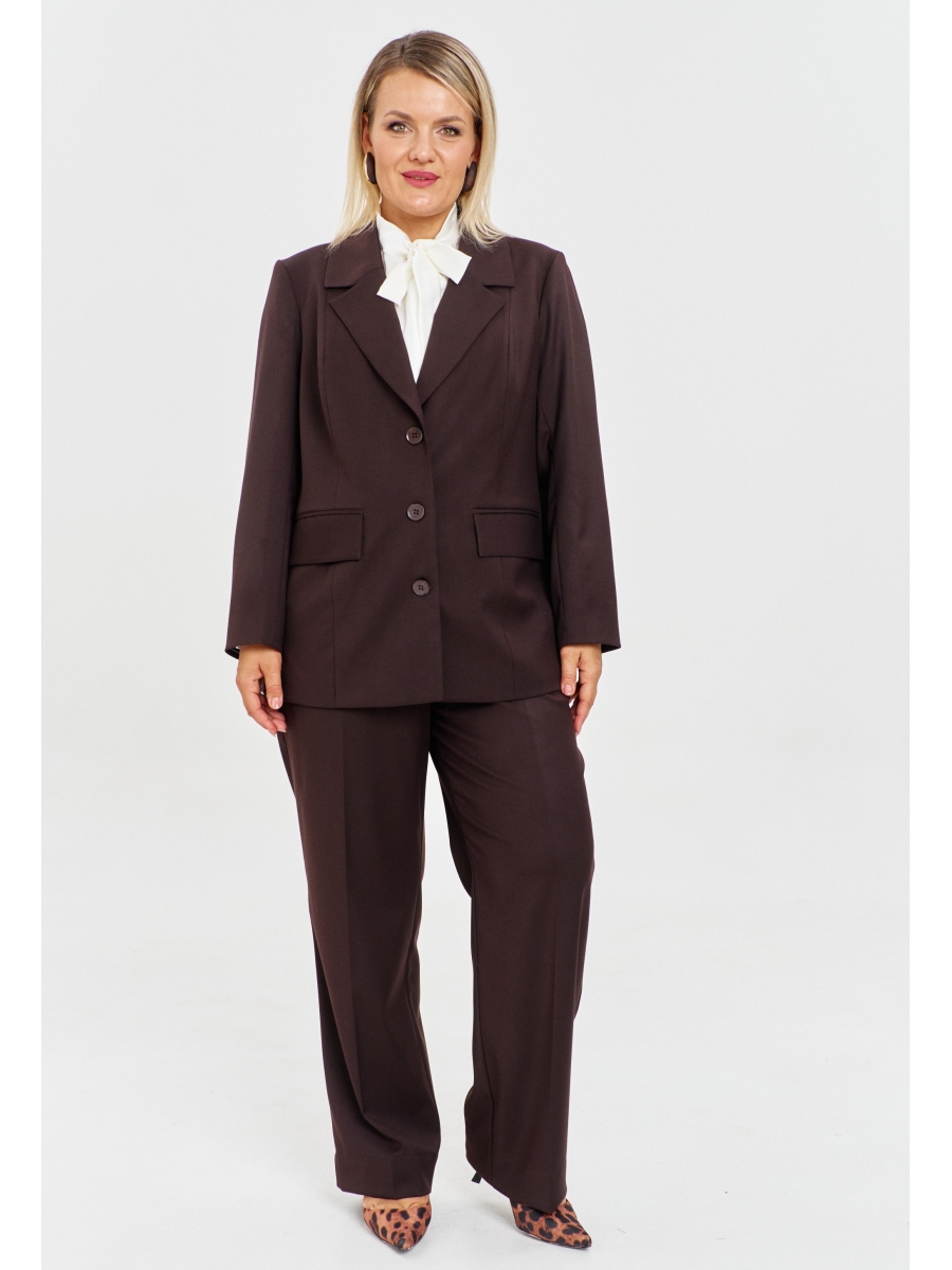 Классический жакет с пиджачным воротником на подкладке прямого кроя, имеет удобные функциональные карманы с клапанами, что добавляет практичности. Жакет на застёжке на декоративных пуговицах.