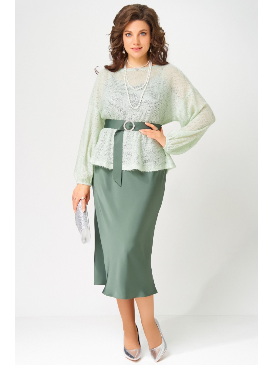 ""Эдита"" — элегантный образ для волшебной ночи. Сатиновое платье струится мягким блеском, а трикотажная накидка из махера с шерстью добавляет тепла и фактурности. Идеальный наряд для встречи Нового года и других торжеств, когда хочется сиять и чувствовать себя особенно.