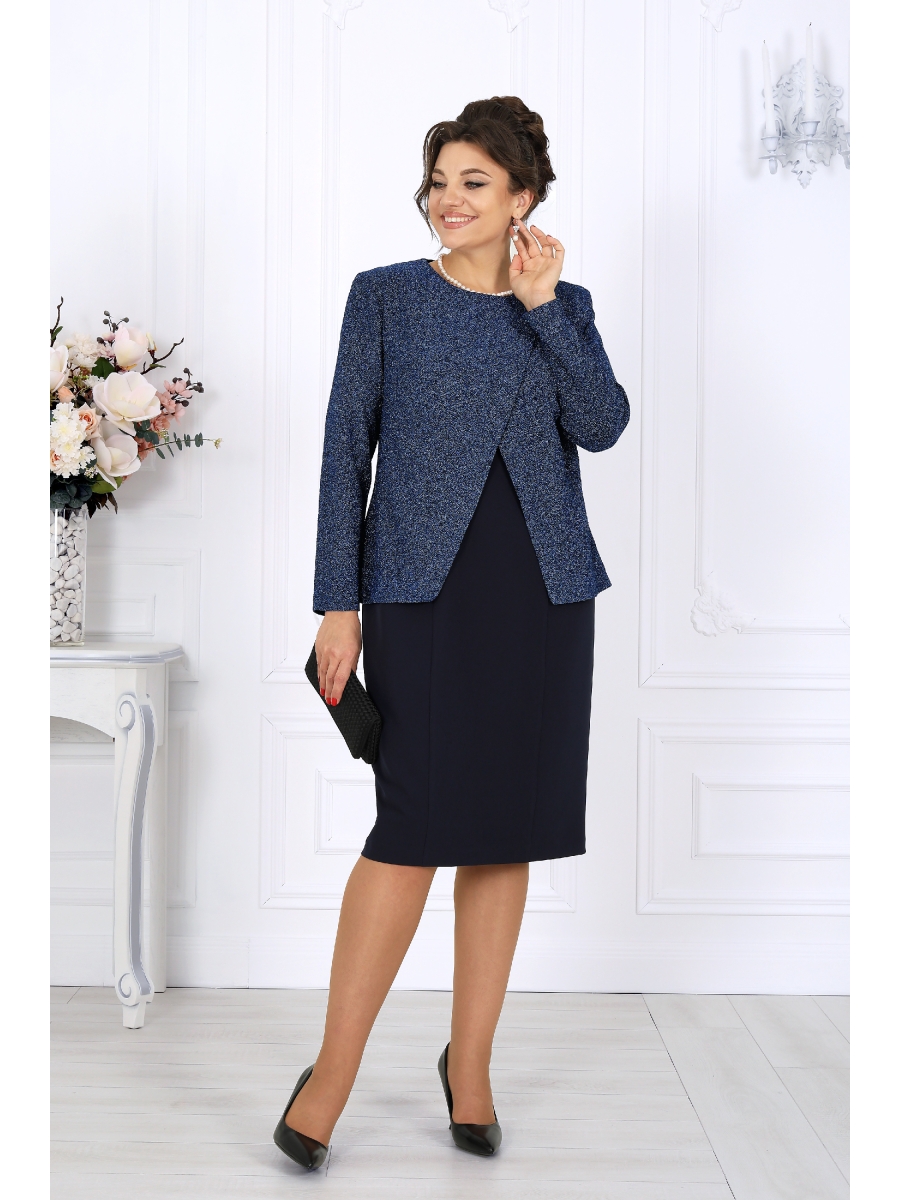 • Материал: жакет - полиэстер 70%, люрекс 25%, спандекс 5%; подкладка жакета - ПЭ 100%; платье - полиэстер 97%, спандекс 3%; подкладка платья - ПЭ 100%