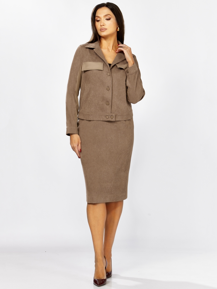 Комплект женский 2-х предметный состоящий из жакета и юбки выполненного из вельвета в мелкий рубчик.