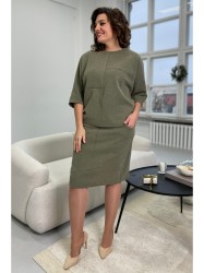 Юбка женская прямого силуэта из трикотажной ткани.По переду расположены карманы с настрочными швами с открытыми срезами. Задняя половинка юбки со средним швом, заканчивающимся разрезом,какеткой и накладными карманами. Верх юбки оформлен поясом ,в пояс вставлена резинка.