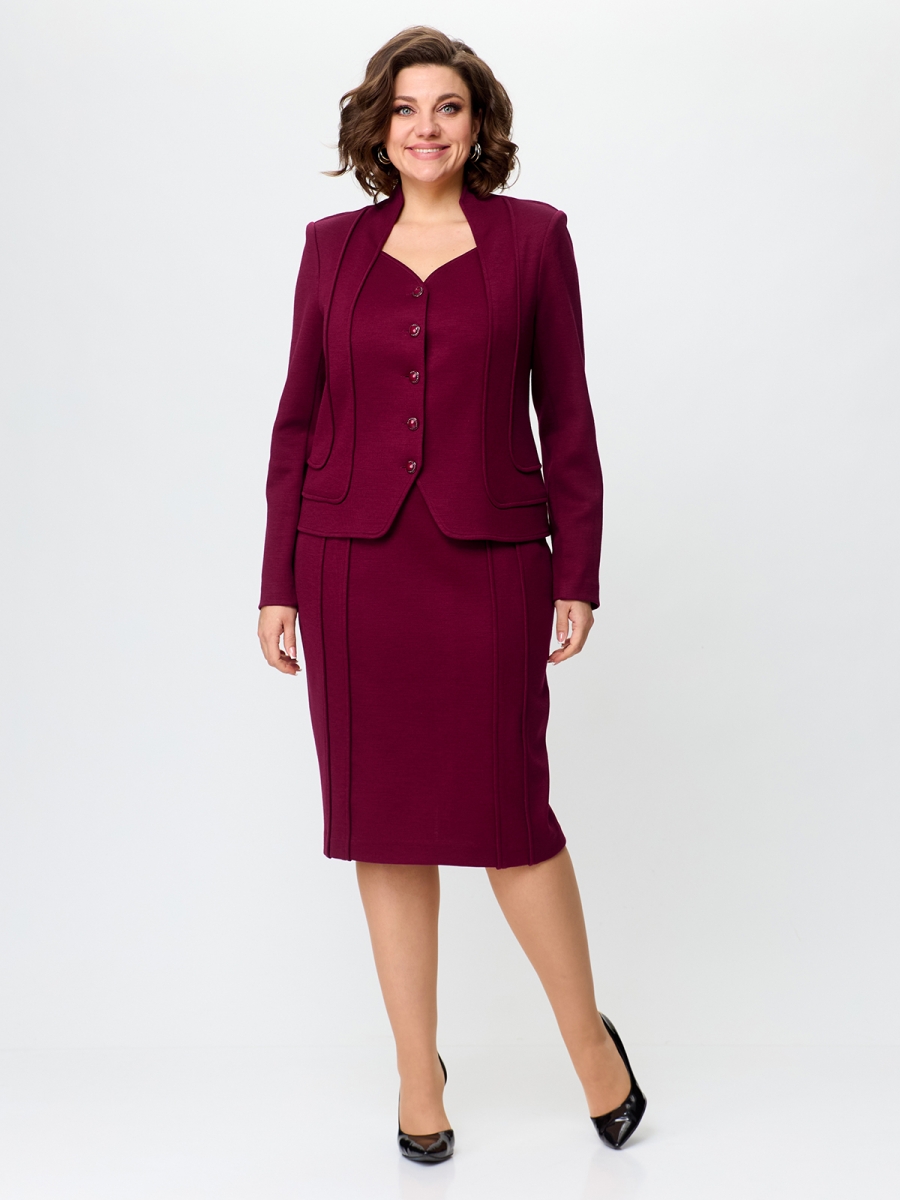 Оформить заказ →Женский повседневный костюм, состоящий из жакета и юбки. Выполнен из трикотажного полотна с шерстью (30% натуральная шерсть, 70% пан) собственного производства. Жакет полуприлегающего силуэта. Декоративные рельефы по переду жакета и юбки. Рукав втачной. По спинке средний шов, рельефы. Застежка на пуговицах. Спереди на подкладке. Юбка прямого силуэта на подкладке. В поясе, по бокам от вытачки до вытачки с эластичной лентой. На заднем полотнище юбки средний шов со шлицей и застежкой на пуговицу и молнию. Пуговицы могут отличаться от представленных на фото. Костюм хорошо подойдет для работающих в сфере образования и офисных работников. При подборе необходимого размера, используйте таблицу обмерных данных в готовом виде. Чтобы перейти в общий каталог моделей, нажмите на иконку бренда в карточке товара. Все изделия производятся в Республике Беларусь на собственной фабрике. Мы будем рады вашим отзывам и рекомендациям, благодаря им мы становимся лучше! Спасибо, что выбираете ZLATA!