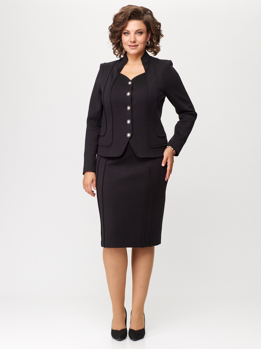 Оформить заказ →Женский повседневный костюм, состоящий из жакета и юбки. Выполнен из трикотажного полотна с шерстью (30% натуральная шерсть, 70% пан) собственного производства. Жакет полуприлегающего силуэта. Декоративные рельефы по переду жакета и юбки. Рукав втачной. По спинке средний шов, рельефы. Застежка на пуговицах. Спереди на подкладке. Юбка прямого силуэта на подкладке. В поясе, по бокам от вытачки до вытачки с эластичной лентой. На заднем полотнище юбки средний шов со шлицей и застежкой на пуговицу и молнию. Пуговицы могут отличаться от представленных на фото. Костюм хорошо подойдет для работающих в сфере образования и офисных работников. При подборе необходимого размера, используйте таблицу обмерных данных в готовом виде. Чтобы перейти в общий каталог моделей, нажмите на иконку бренда в карточке товара. Все изделия производятся в Республике Беларусь на собственной фабрике. Мы будем рады вашим отзывам и рекомендациям, благодаря им мы становимся лучше! Спасибо, что выбираете ZLATA!