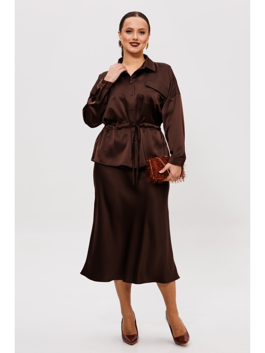 Нарядный юбочный костюм, выполненный из струящегося шелка «Армани» (тянется).