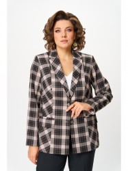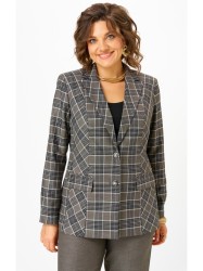 Жакет женский удлиненный, из текстильной ткани, на подкладке, полуприлегающего силуэта с центральной бортовой застежкой на пуговицы до линии перегиба лацкана. Спереди рельефные швы от плечевого шва, отрезной бочок и карман с клапаном. Спинка с рельефами от плечевого шва. Рукав втачной, двухшовный. Воротник пиджачного типа.