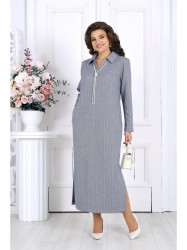 Платье женское, прямого силуэта, расширенное к низу, выполнено из трикотажного полотна. Платье женское прямого силуэта, длиной по среднему шву спинки 124 см, от шва втачивания воротника. Перед платья с нагрудными вытачками из проймы. Спинка со средним швом. В боковых швах обработаны карманы и разрезы. Воротник рубашечного типа, по переду планка «поло». Рукав втачной, одношовный, длиной 60 см. Платье без подкладки.