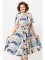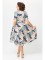 885.2 бежевый принт «ярко-голубые и белые листья»
