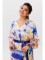 885.2 бежевый принт «ярко-голубые и белые листья»