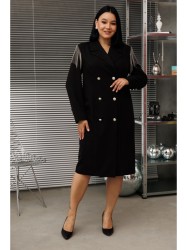 Оформить заказ →Платье женское из текстильной ткани двубортное, полуприлегающего силуэта. По полочке и спинке прилегание создается за счет рельефов, выходящих из проймы. По спинке - средний шов, переходящий в шлицу. Вороник пиджачного типа. Застежка на петли и пуговицы. Рукав втачной двухшовный со шлицей и пуговицами. По окату рукова отделка в виде металлезированной бахромы.