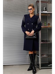 Оформить заказ →Платье женское из текстильной ткани двубортное, полуприлегающего силуэта. По полочке и спинке прилегание создается за счет рельефов, выходящих из проймы. По спинке - средний шов, переходящий в шлицу. Вороник пиджачного типа. Застежка на петли и пуговицы. Рукав втачной двухшовный со шлицей и пуговицами. По окату рукава отделка в виде металлизированной бахромы.