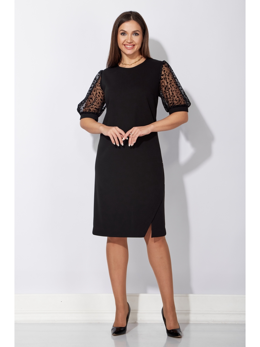 Оформить заказ →Платье женское, полуприлегающего силуэта с коротким рукавом. Рукав типа "фонарик" со сборкой сверху и снизу. По низу притачная манжета. По переду нагрудные вытачки. Горловина круглой формы. По низу ассиметричная, отлетная планка с разрезом и декоративная нашивка. По спинке средний шов с разрезом снизу и талевые вытачки. Горизонтальный подрез выше линии талии. Верхняя часть спинки и рукав выполнены из ткани сетка с флоковым нанесением. Застежка на потайную "молнию".