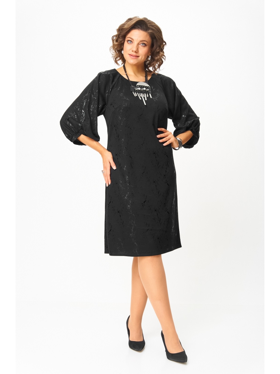 Оформить заказ →Нарядное женское платье из трикотажного полотна с добавлением вискозы. Нарядность платью придает блестящий рисунок в тон основного цвета. Силуэт прямой, длина чуть ниже колена, вырез горловины круглый с застежкой на потайную молнию в среднем шве по спинке, рукав реглан 3/4 с фигурным манжетом и сборкой по низу.