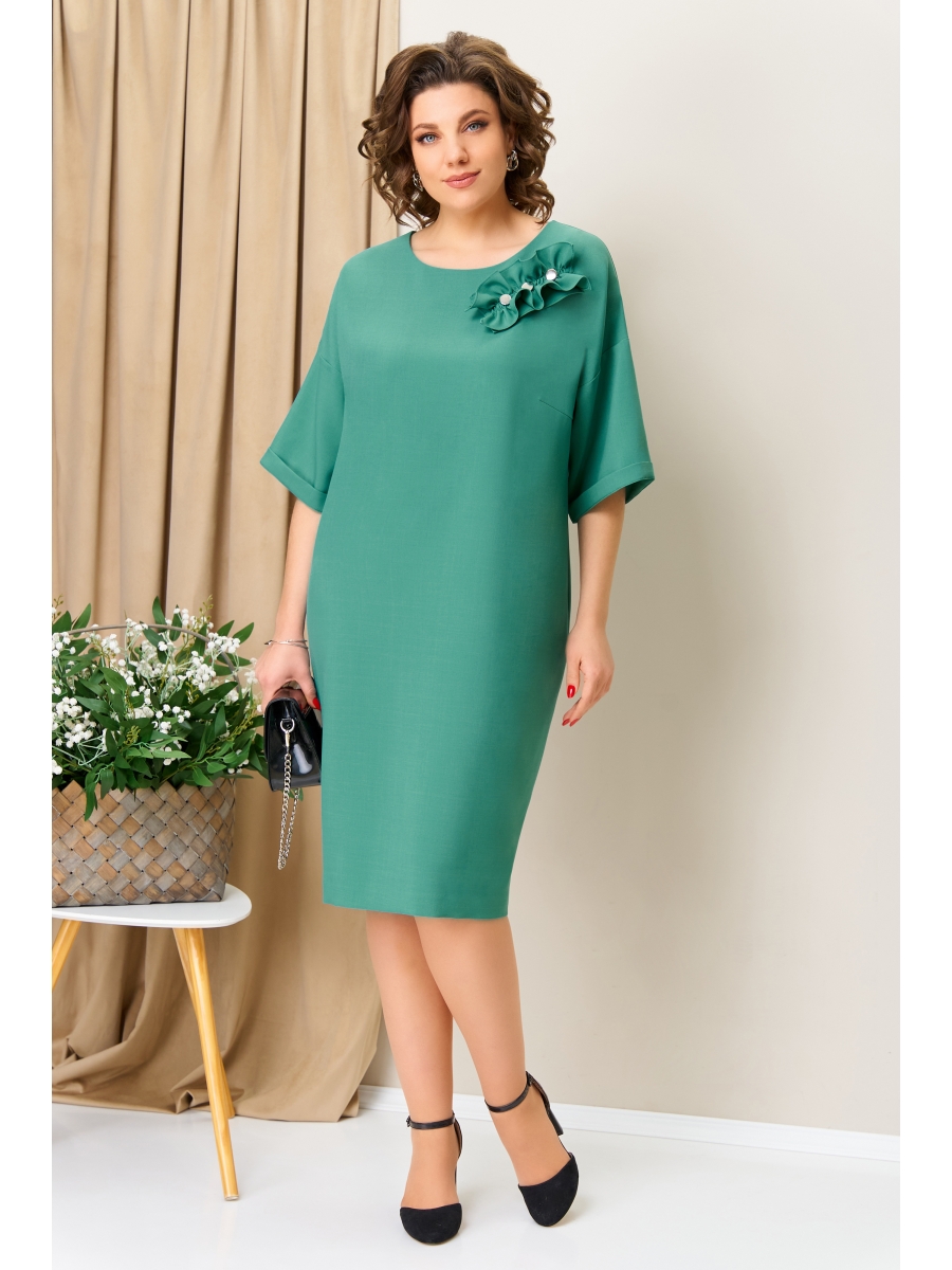 Нарядное платье из текстиля полуприлегающего силуэта с цельнокроеным рукавом. Горловина платья- округлая.