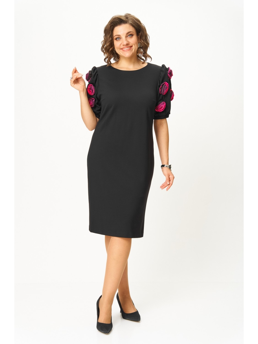 Оформить заказ →Платье женское полуприлегающего силуэта выполнено из трикотажного полотна с втачным рукавом на подкладке. Горловина округлой формы. По переду расположены нагрудные вытачки. Спинка платья со средним швом с застежкой на петлю и пуговицу и разрезом по низу. Рукав короткий со сборкой по окату и низу рукава. Особенный акцент платья декоративные цветы, из отделочной ткани, добавляющие объем и изюминку.