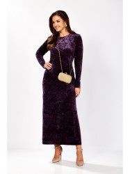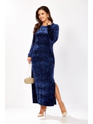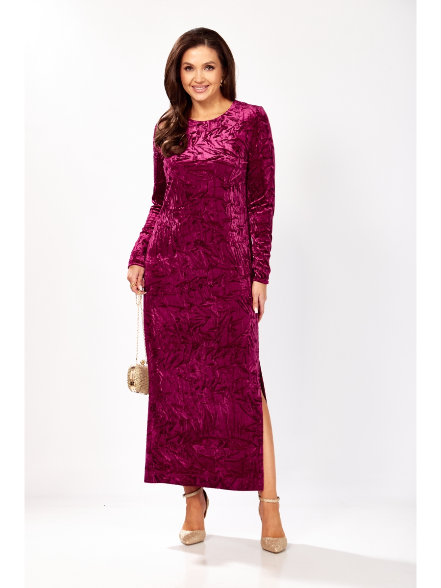 Платье прямого силуэта из бархата. В боковом шве разрез. Рукав втачной одношовный. По спинке застежка капелька на петлю и пуговицу.