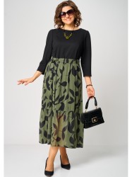 Платье женское нарядно-повседневное полуприлегающего силуэта до талии. Выполнено из трикотажного полотна в сочетании с шифоном. Вырез горловины круглый на обтачке. По спинке застежка капелька на навесную петлю и пуговицу. Рукав втачной 7/8 по верху со встречной складкой. Платье отрезное по талии, верх из трикотажного полотна , низ платья юбка со сборкой.