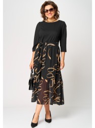 Платье женское нарядно-повседневное полуприлегающего силуэта до талии. Выполнено из трикотажного полотна в сочетании с шифоном. Вырез горловины круглый на обтачке. По спинке застежка капелька на навесную петлю и пуговицу. Рукав втачной 7/8 по верху со встречной складкой. Платье отрезное по талии, верх из трикотажного полотна, низ платья юбка со сборкой.