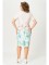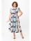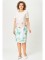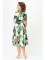 885.2 бежевый принт «ярко-голубые и белые листья»