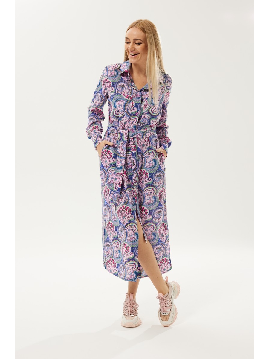 Оформить заказ →Длинное платье рубашечного типа с ярким запоминающимся принтом. Застежка центральная на петли и пуговицы. Горловина с отложным рубашечным воротником на стойке. Рукав длинный одношовный втачной, низ рукава оформлен манжетой на две петли и пуговицы. Нижняя часть платья фгурная, в боковых швах разрезы. В комплект идет пояс из основной ткани.