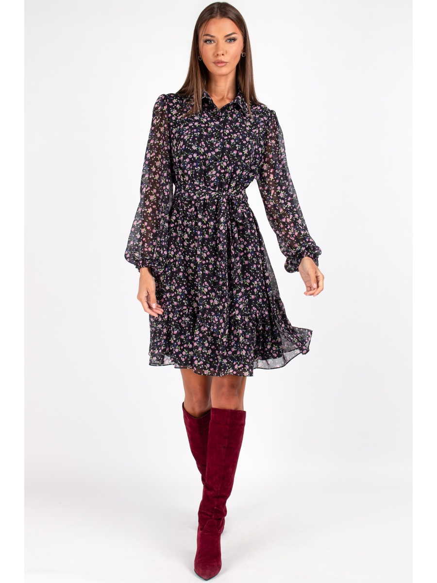 Сочетайте платье с замшевыми сапогами, добавьте кожаную куртку или ремень для более дерзкого образа. Аксессуары подчеркнут цветочный принт и создадут завершённый лук.