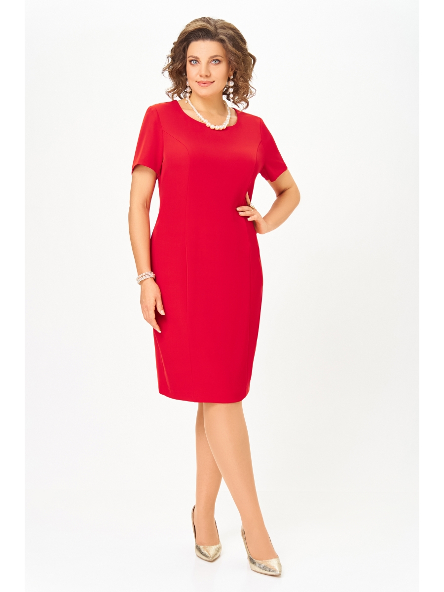 Платье полуприлегающего силуэта из мягкой поливискозной ткани. По полочке выполнены рельефные швы, по спинке рельефные швы, средний шов со шлицей и застёжка на потайную тесьму-молнию.
