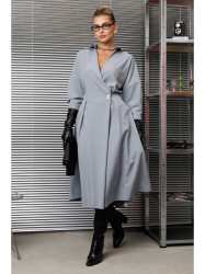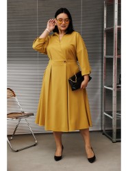 Элегантное женское платье из костюмной ткани необычного кроя станет изюминкой вашего гардероба. Платье полуприлегающего силуэта, отрезное по линии талии со спущенным плечом. Рукав 3/4 длинный на отрезной манжете. По полочке идут защипы-складки в верхней и нижней частях, запах - на петли и пуговицы по подрезу. По нижней части платья запах идет в виде складки. По спинке кокетка со складкой, по подрезу вставлена резинка. Юбка-полусолнце с односторонними складками по полочке, по бокам карманы. По горловине воротник на отрезной стойке. Платье будет идеально смотреться с туфлями, ботинками и сапогами.