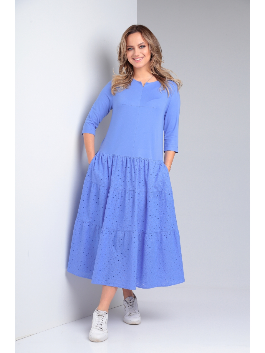 Оформить заказ →Платье в стиле бохо. Лиф платья из трикотажного полотна, низ из хлопковой ткани шитье. По переду лифа средний шов с небольшим разрезом в области горловины. Низ платья в виде юбки с отрезными воланами, на подкладке. Горловина округлой формы, обработана обтачкой. Рукав втачной укороченный.