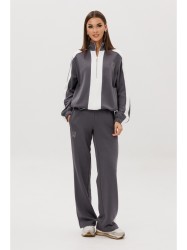 Контрастные лампасы на брюках, рукавах, по центру переда и низу придают модели особую динамичность и изысканность.