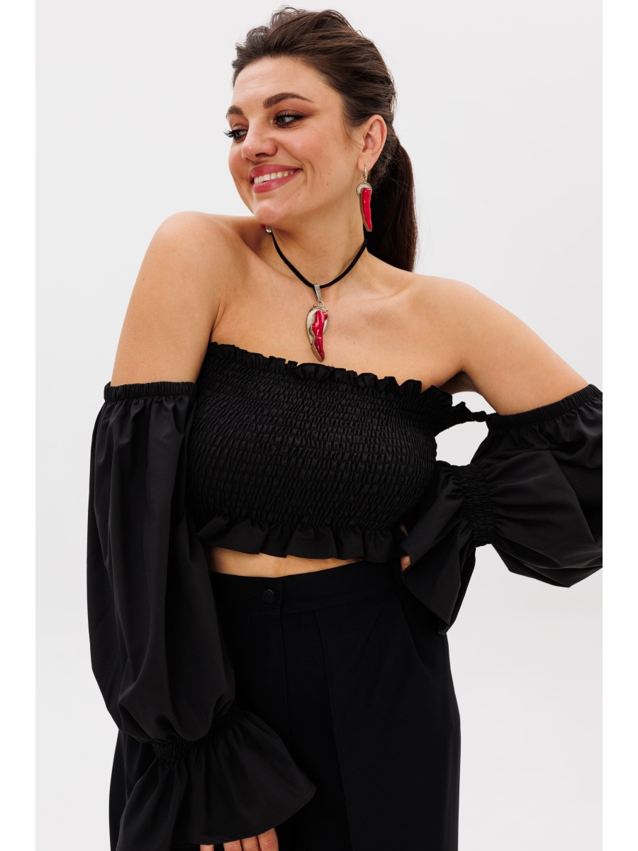 Укороченный крой и ликра по всей длине блузы придают модели особый шарм и индивидуальность.