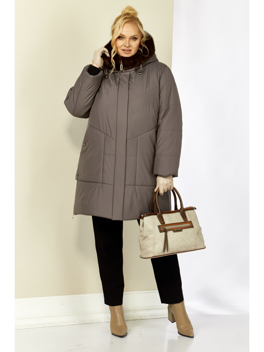 Модная, зимняя удлиненная куртка с утепляющим наполнителем «Верблюжья шерсть», который хорошо держит форму и не сбивается. На подкладке, подкладка прошита, стеганная. Изделие прямого, классического стиля, выполнено из курточной матовой ткани высокого качества, непромокаемое. По переду центральная застежка на молнии с планкой на металлические кнопки, а также функциональными, глубокими, накладными карманами на магнитах и декоративным элементом. Рукав втачной. Для защиты от ветра и мороза, рукава по низу дополнены внутренними трикотажными манжетами. Капюшон не съемный, регулируется декоративным шнуром. Внутренняя часть капюшона отделана мехом, максимально по внешнему виду приближенного к натуральному «Норка». Спинка цельная. Низ изделия с легкими защипами. Боковые швы декорированы молнией (действующая).