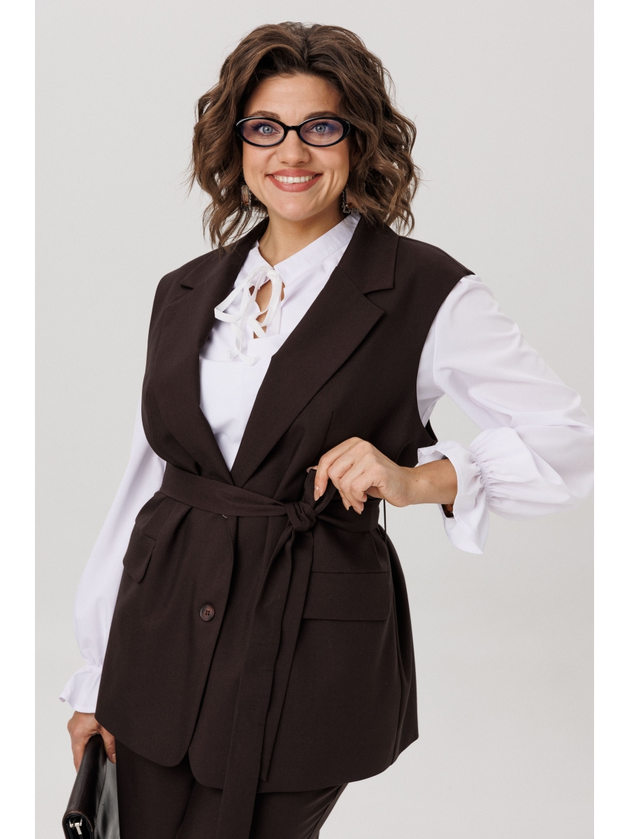 На модели брюки 1702 и блуза 1281. Также, можно купить жилет и брюки в костюме 1501.